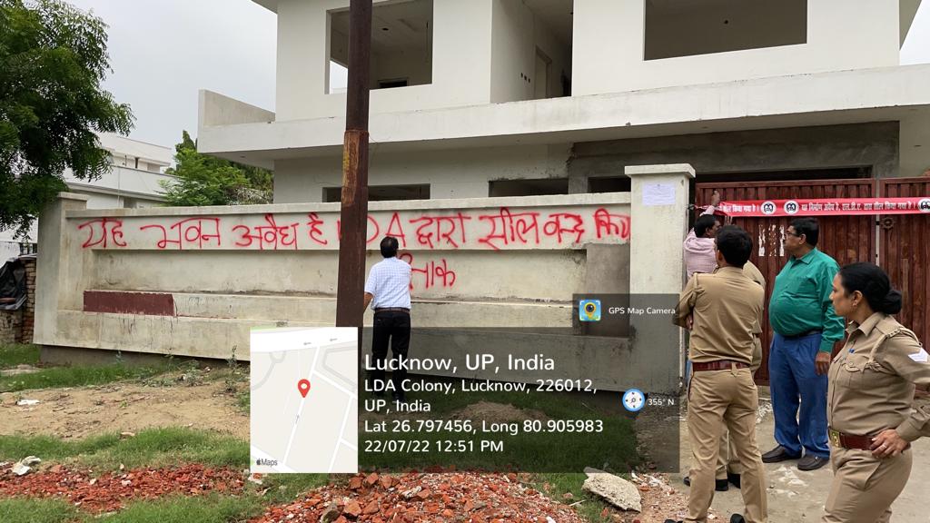 इसके अतिरिक्त गोसाईगंज में सुनील लोधी द्वारा मौजा खुजौली, नगराम रोड, थाना-गोसाईगंज पर बिना मानचित्र स्वीकृत कराये लगभग 40×60 फिट क्षेत्रफल में बेसमेण्ट का निर्माण किया गया। जिसके विरुद्ध विहित न्यायालय में वाद संख्या-16/2021 योजित किया गया था। वाद में इस स्थल को सील किये जाने के आदेश दिये गए थे। उक्त आदेश के अनुपालन में परिसर को सील कर दिया गया।