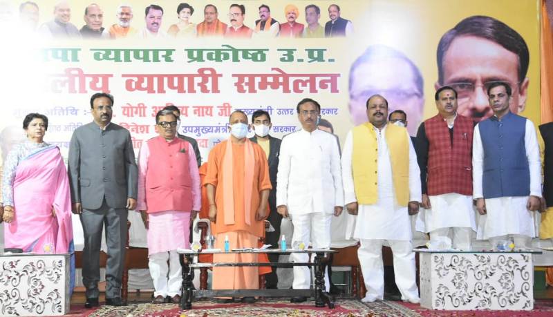 भारतीय जनता पार्टी व्यापार प्रकोष्ठ द्वारा आयोजित व्यापारी सम्मेलन को रविवार को मुख्यमंत्री योगी आदित्यनाथ तथा उप मुख्यमंत्री डा. दिनेश शर्मा ने सम्बोधित किया। लखनऊ महानगर के कैम्पल रोड स्थित जे.एस. लॉन में बड़ी संख्या में उपस्थित व्यापारियों के सम्मेलन में भाजपा व्यापार प्रकोष्ठ केे प्रदेश संयोजक विनीत अग्रवाल शारदा तथा महानगर संयोजक अभिषेक खरे ने तराजू भेंट कर मुख्यमंत्री योगी आदित्यनाथ तथा उप मुख्यमंत्री डा. दिनेश शर्मा का अभिनन्दन किया। सम्मेलन में जल शक्ति मंत्री डॉ. महेंद्र सिंह, महापौर संयुक्ता भाटिया, पार्टी के क्षेत्रीय अध्यक्ष शेष नारायण मिश्रा, लखनऊ महानगर अध्यक्ष मुकेश शर्मा, व्यापारी कल्याण बोर्ड उपाध्यक्ष मनीष गुप्ता, प्रदेश सह संयोजक अनूप गुप्ता, मुकुंद मिश्रा, क्षेत्रीय संयोजक पुरुषोत्तम पुरी मुख्य रूप से उपस्थित रहे।