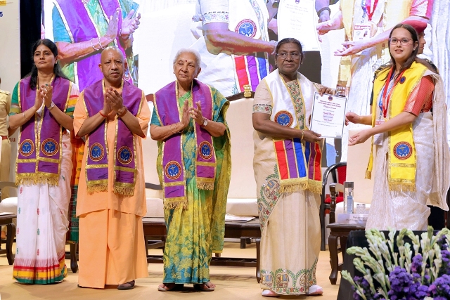 भारत की राष्ट्रपति द्रौपदी मुर्मु ने आज जनपद गोरखपुर स्थित अखिल भारतीय आयुर्विज्ञान संस्थान (एम्स) के प्रथम दीक्षान्त समारोह में मुख्य अतिथि के तौर पर प्रथम बैच के छात्र-छात्राओं को उपाधि तथा सर्वोत्तम अंक प्राप्त करने वाले विद्यार्थियों को स्वर्ण पदक प्रदान किए। इस अवसर पर उत्तर प्रदेश की राज्यपाल आनंदीबेन पटेल, मुख्यमंत्री योगी आदित्यनाथ तथा केन्द्रीय स्वास्थ्य एवं परिवार कल्याण राज्यमंत्री अनुप्रिया पटेल भी उपस्थित रहीं।