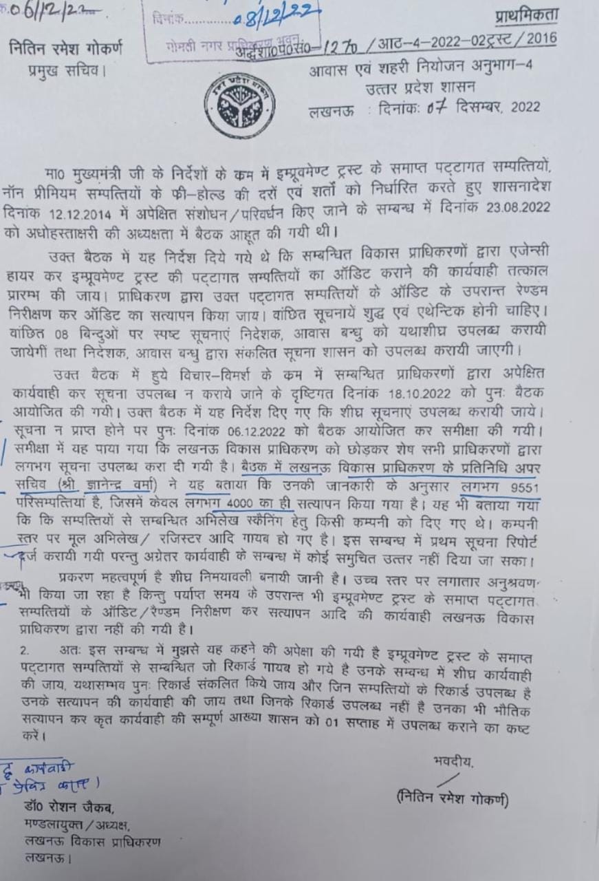 #LDA में घोटालों की लिस्ट में एक और घोटाला शामिल, कार्यवाई के लिए प्रमुख सचिव ने लिखा पत्र