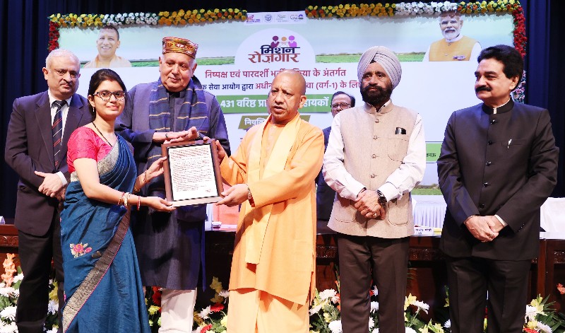 मुख्यमंत्री ने लोक भवन सभागार में निष्पक्ष एवं पारदर्शी भर्ती प्रक्रिया के माध्यम से उत्तर प्रदेश लोक सेवा आयोग द्वारा अधीनस्थ कृषि सेवा (वर्ग-1) के लिए चयनित 431 वरिष्ठ प्राविधिक सहायकों के नियुक्ति पत्र वितरण कार्यक्रम में अपने विचार व्यक्त कर रहे थे। उन्होंने 11 नवचयनित वरिष्ठ प्राविधिक सहायकों को नियुक्ति पत्र प्रदान किये। मुख्यमंत्री ने उत्तर प्रदेश लोक सेवा आयोग को इस चयन की प्रक्रिया को पारदर्शी तरीके से सम्पन्न करने के लिए धन्यवाद दिया। इस अवसर पर नवचयनित वरिष्ठ प्राविधिक सहायकों ने निष्पक्ष भर्ती प्रक्रिया के लिए मुख्यमंत्री के प्रति आभार व्यक्त किया।