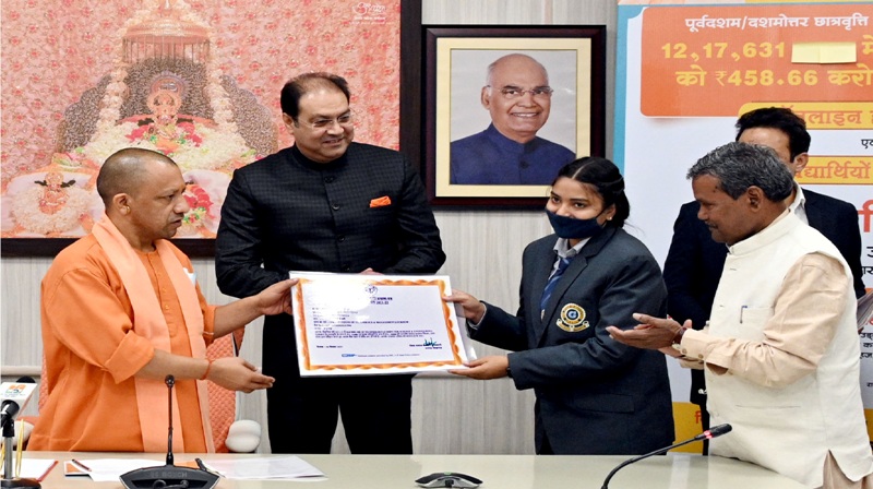 उत्तर प्रदेश के मुख्यमंत्री योगी आदित्यनाथ ने अपने सरकारी आवास पर पूर्वदशम/दशमोत्तर छात्रवृत्ति योजना 2021-22 के अन्तर्गत 12 लाख 17 हजार 631 मेधावी छात्र-छात्राओं के बैंक खातों में 458 करोड़ 66 लाख रुपए का ऑनलाइन अन्तरण किया। इस अवसर पर उन्होंने 05 छात्र-छात्राओं हर्ष विश्वकर्मा, आशीष त्रिपाठी, प्राची मिश्रा, रिन्कू रावत और किशा फातिमा को छात्रवृत्ति स्वीकृति प्रमाण पत्र प्रदान किया। साथ ही, उन्होंने 05 जनपदों-मुरादाबाद, फिरोजाबाद, प्रयागराज, बांदा तथा उन्नाव के छात्र-छात्राओं से वर्चुअल माध्यम से संवाद किया। उन्होंने छात्र-छात्राओं को शासन की तरफ से मिल रही छात्रवृत्ति एवं शुल्क प्रतिपूर्ति के विषय में जानकारी प्राप्त की।