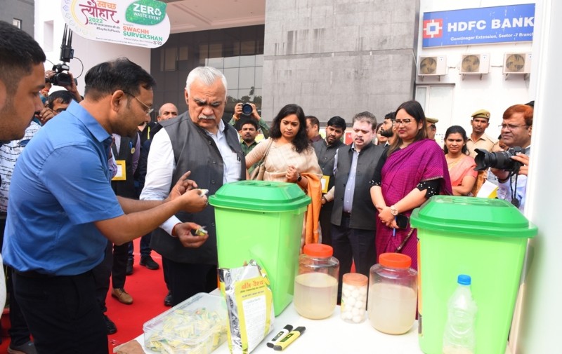 अपने संबोधन से पूर्व, मुख्य सचिव ने ई-बॉल वेस्ट वाटर ट्रीटमेंट, किचन वेस्ट टू ऑर्गेनिक मैम्योर, जीरो वेस्ट इवेंट्स, ड्रेनेज क्लीनिंग रोबोट पर आधारित स्टॉल्स का निरीक्षण भी किया और कहा कि इन नवीनतम तकनीकों का उपयोग उत्तर प्रदेश में शहरों व तालाबों को स्वच्छ कराने के लिये किया जाये।