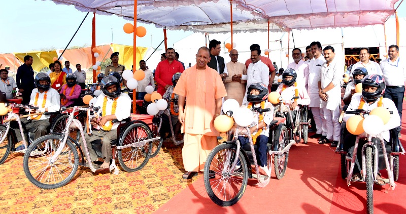 CM Yogi ने गोरखपुर में 71 दिव्यांगजन को मोटराइज्ड ट्राईसाइकिल का वितरण किया