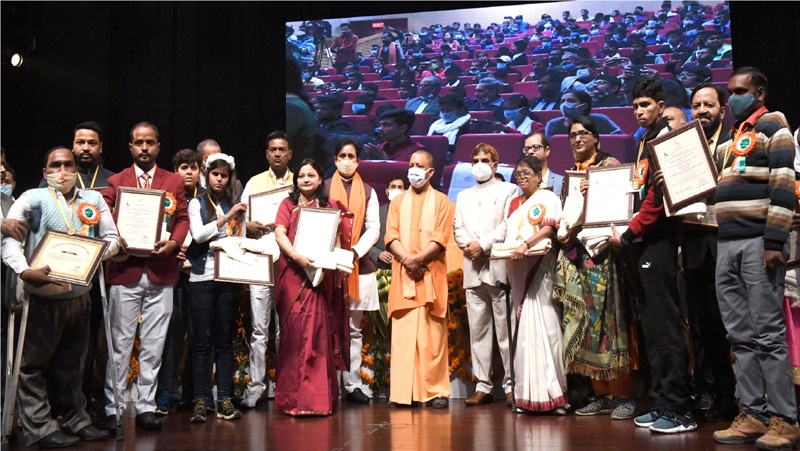 उत्तर प्रदेश के मुख्यमंत्री योगी आदित्यनाथ ने विश्व दिव्यांग दिवस के अवसर पर डॉ0 शकुन्तला मिश्रा राष्ट्रीय पुनर्वास विश्वविद्यालय में आयोजित कार्यक्रम में विभिन्न श्रेणी के सर्वश्रेष्ठ दिव्यांग व्यक्तियों तथा दिव्यांगजन के हितार्थ कार्य कर रही सर्वश्रेष्ठ संस्थाओं को राज्य स्तरीय पुरस्कार प्रदान किए। इस अवसर पर मुख्यमंत्री ने दिव्यांगजन सशक्तीकरण विभाग द्वारा संचालित विशेष विद्यालयों के शैक्षणिक सत्र 2020-21 में हाईस्कूल एवं इण्टरमीडिएट की परीक्षा में उत्कृष्ट अंकों के साथ उत्तीर्ण छात्र-छात्राओं को सम्मानित किया। इसके पूर्व, उन्होंने विश्वविद्यालय परिसर में आयोजित प्रदर्शनी का उद्घाटन कर अवलोकन किया तथा दिव्यांगजन को सहायक उपकरण भी वितरित किये। यह कार्यक्रम दिव्यांगजन सशक्तीकरण विभाग द्वारा आयोजित किया गया था।