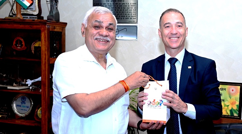 मुख्य सचिव दुर्गा शंकर मिश्र से डॉ0 जीन बेली, डायरेक्टर जनरल, अंतर्राष्ट्रीय राइस रिसर्च इंस्टीट्यूट ने शिष्टाचार भेंट की। इस अवसर पर मुख्य सचिव ने डॉ0 जीन बेली को ओडीओपी उत्पाद उपहार स्वरूप प्रदान किये।