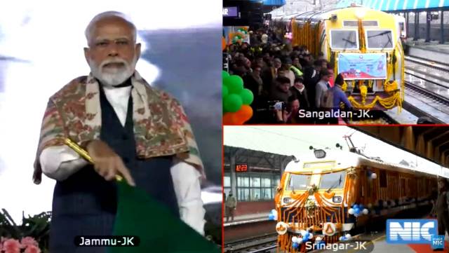 - प्रधानमंत्री ने कश्मीर घाटी में कश्मीर की पहली इलेक्ट्रिक ट्रेन और संगलदान-बारामूला के बीच ट्रेन सेवा को (श्रीनगर स्टेशन से) हरी झंडी दिखाई