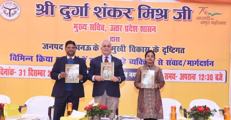 मुख्य सचिव दुर्गा शंकर मिश्र ने सर्वाेदय नगर स्थित विकास भवन में जनपद लखनऊ के बहुमुखी विकास के दृष्टिगत विभिन्न क्रिया कलापों में कार्य कर रहें कर्मियों से संवाद कर उनका मार्गदर्शन किया। इस अवसर पर उन्होंने उन्नति पुस्तिका ‘ग्राम्य विकास प्रबोधिनी’ एवं ‘अवध ग्राम्या पुस्तिका’ का विमोचन किया।