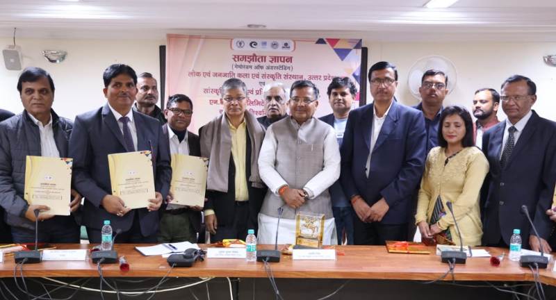 उत्तर प्रदेश के पर्यटन एवं संस्कृति मंत्री जयवीर सिंह की गरिमामयी उपस्थिति में पर्यटन भवन में लोक एवं जनजाति कला एवं संस्कृति के संरक्षण, परिवर्धन के लिए 04 संस्थानों से समझौता ज्ञापन पर हस्ताक्षर किये गये। एमओयू लोक एवं जनजाति कला एवं संस्कृति संस्थान उ0प्र0 तथा सांस्कृतिक स्रोत एवं प्रशिक्षण केन्द्र नई दिल्ली, एनटीपीसी लि0, बुन्देलखण्ड झांसी, बुन्देलखण्ड विश्वविद्यालय, झांसी तथा बुन्देलखण्ड महाविद्यालय झांसी के मध्य किया गया।