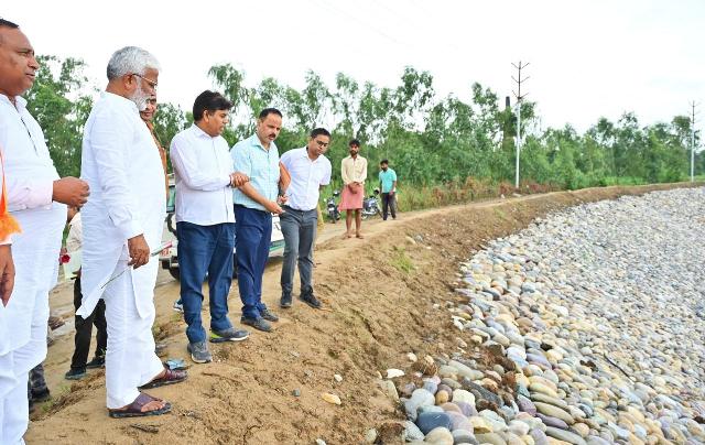 जल शक्ति मंत्री स्वतंत्र देव सिंह ने सर्वप्रथम शारदा नदी के दायें किनारे पर ग्राम बझेड़ा के अपस्ट्रीम में रिवर ट्रेनिंग कार्य की परियोजना का निरीक्षण किया। अफसरों से सर्वप्रथम नक़्शे से पूरी परियोजना समझी। इसके बाद उन्होंने पूरी परियोजना का पैदल भ्रमण कर परियोजना के तहत कराए कार्य, उसकी गुणवत्ता देखी। निर्देश दिए कि जलस्तर बढ़ने पर इसकी नान स्टाप निगरानी की जाए। काम के दौरान विभाग स्थानीय ग्रामीणों से संवाद बनाए रखे, कराए जाने वाले कार्यों की जानकारी दें। मौजूद ग्रामीणों से फीडबैकलिया।
