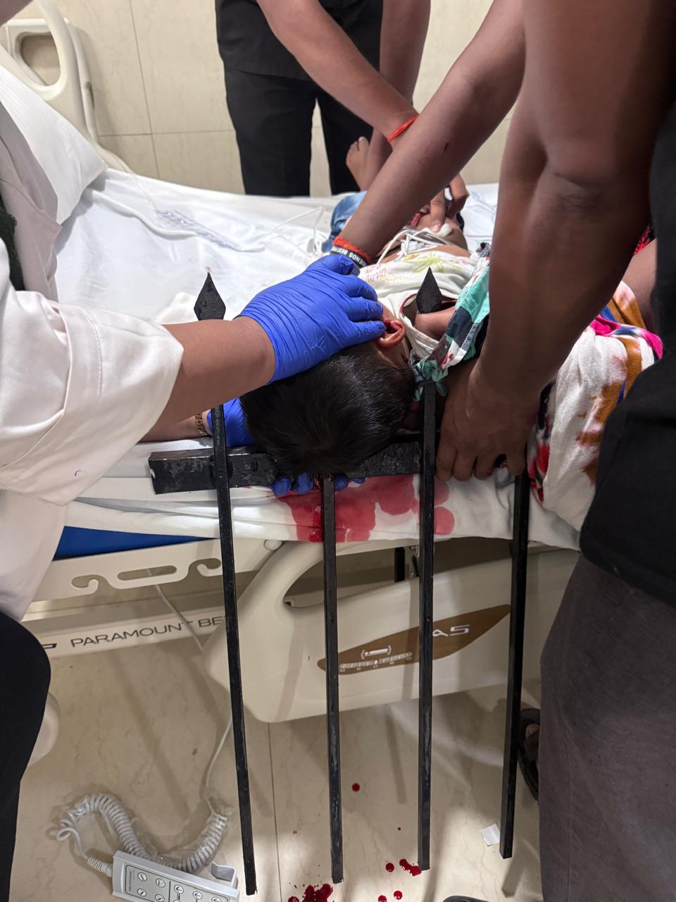 गोमतीनगर निवासी तीन वर्षीय बालक कार्तिक के साथ हुई भयावह दुर्घटना में उसके सिर और कंधे में लगभग 20 फीट ऊँचाई से गिरने के बाद रेलिंग की लोहे की छड़ आर-पार घुस गई। परिजन पहले उसे एक निजी अस्पताल ले गए, जहाँ ऑपरेशन का खर्च 15 लाख रुपये से अधिक बताया गया। असहाय एवं निराश परिवार रात लगभग 11:45 बजे बच्चे को लोहे की ग्रिल के साथ ही किंग जॉर्ज मेडिकल यूनिवर्सिटी (केजीएमयू) के ट्रॉमा सेंटर लेकर पहुँचा।