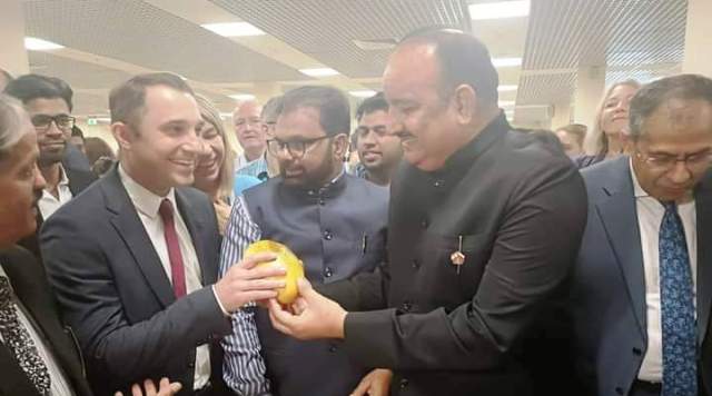 एक आम लेकर मंत्री दिनेश प्रताप सिंह मॉस्को में हो रहे लट्टू, आम ने जाना खुद अपना स्वाद