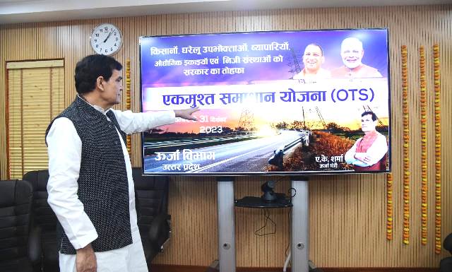 उत्तर प्रदेश के बिजली उपभोक्ताओं को बिलम्बित भुगतान अधिभार (सरचार्ज) में छूट देने के लिए शुरू की गयी एकमुश्त समाधान योजना (ओटीएस) को एतिहासिक सफलता प्राप्त हुई है। इस योजना को सफल बनाने में जनता ने भी भरपूर सहयोग देते हुए जमकर लाभ उठाया है। ऊर्जा एवं नगर विकास मंत्री ए.के. शर्मा ने इस एतिहासिक सफलतम योजना के लिए जनता के साथ ही विद्युत् कर्मियों को शुभकामनायें एवं बधाई दी है। साथ ही ऊर्जा मंत्री ने इस अवसर पर प्रधानमंत्री एवं मुख्यमंत्री को सादर नमन किया। मंत्री ने बताया की इस योजना के तहत लगभग 52 लाख उपभोक्ताओं ने पंजीकरण कराकर 1830 करोड़ रुपए का लाभ लिया है। साथ ही ऊर्जा विभाग को 5600 करोड़ रूपये से ज्यादा का बकाया राजस्व भी प्राप्त हुआ और एक हज़ार करोड़ आने अभी शेष है।