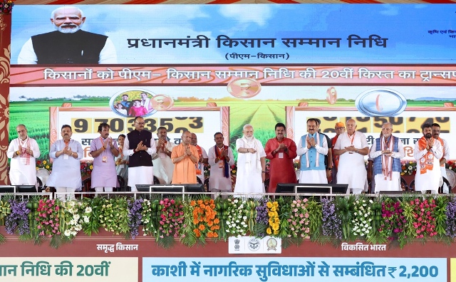 प्रधानमंत्री नरेन्द्र मोदी ने आज जनपद वाराणसी में उत्तर प्रदेश के मुख्यमंत्री योगी आदित्यनाथ की उपस्थिति में लगभग 2,200 करोड़ रुपये लागत की 52 कल्याणकारी विकास परियोजनाओं का लोकार्पण तथा शिलान्यास किया। इस अवसर पर प्रधानमंत्री ने ‘प्रधानमंत्री किसान सम्मान निधि’ की 20वीं किश्त के अन्तर्गत 9.71 करोड़ से अधिक किसानों के खाते में 20,500 करोड़ रुपये से अधिक की धनराशि का अंतरण किया। उन्होंने काशी सांसद प्रतियोगिताओं से सम्बन्धित वेबसाइट, रजिस्ट्रेशन पोर्टल तथा क्यू0आर0 कोड का अनावरण किया। प्रधानमंत्री ने दिव्यांगजन को एलिम्को द्वारा डिजाइन किए गए सहायक उपकरण प्रदान किए।