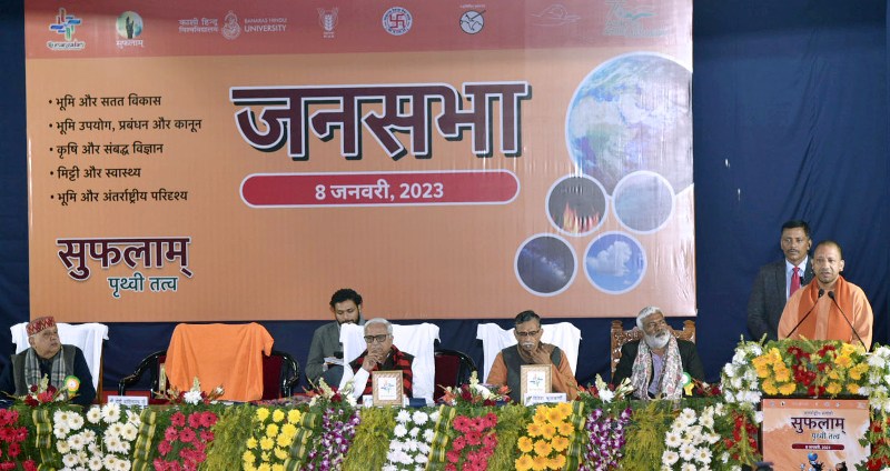 उत्तर प्रदेश के मुख्यमंत्री योगी आदित्यनाथ ने जनपद वाराणसी में काशी हिन्दू विश्वविद्यालय के स्वतंत्रता भवन में आयोजित तीन दिवसीय अंतर्राष्ट्रीय संगोष्ठी सुफलाम के तकनीकी सत्र के बाद जनसभा को संबोधित किया। उन्होंने कहा कि किसानों की आय बढ़ाने के लिए राज्य सरकार प्रतिबद्ध है। किसानों को विभिन्न योजनाओं के जरिए लाभ दिया जा रहा है। जलवायु परिवर्तन से हो रहे खतरे को देखते हुए अब समय की मांग है कि गौ आधारित प्राकृतिक खेती पर जोर दिया जाए। जलवायु परिवर्तन की वजह से सबसे ज्यादा नुकसान धरती और जल का ही हुआ है। धरती माता के साथ खिलवाड़ हर हाल में बंद होना चाहिए। इसके लिए जरूरी है कि केमिकल युक्त खेती की जगह गौ आधारित प्राकृतिक खेती की जाए। उन्होंने किसानों से गौ आधारित प्राकृतिक खेती की ओर लौटने की अपील की।