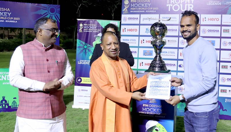 उत्तर प्रदेश के मुख्यमंत्री योगी आदित्यनाथ ने अपने सरकारी आवास पर हॉकी पुरुष वर्ल्ड कप-2023 की ट्रॉफी का अनावरण किया। उन्होंने ‘हॉकी विश्वकप’ में शानदार प्रदर्शन के साथ जीत के लिए भारतीय हॉकी टीम को शुभकामनाएं दीं। मुख्यमंत्री ने टोक्यो ओलंपिक 2020 की पदक विजेता भारतीय हॉकी पुरुष टीम के सदस्य ललित उपाध्याय को उत्तर प्रदेश पुलिस में पुलिस उपाधीक्षक पद के लिए नियुक्ति पत्र प्रदान किया। इस अवसर पर उन्होंने कहा कि इसी कड़ी में ओलंपिक, एशियाई खेलों और राष्ट्रमंडल खेलों सहित विभिन्न अन्तर्राष्ट्रीय प्रतिस्पर्धाओं के पदक विजेताओं की शासकीय सेवा का अवसर प्रदान किया जा रहा है। ललित उपाध्याय के खेल योगदान की सराहना करते हुए उन्होंने कहा कि राज्य सरकार प्रदेश में खेल और खिलाड़ियों के प्रोत्साहन के लिए प्रतिबद्ध है।