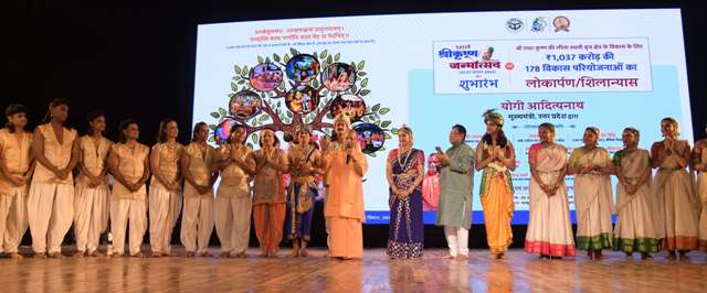 मुख्यमंत्री ने जनपद मथुरा में 5251वें श्रीकृष्ण जन्मोत्सव का शुभारम्भ किया और ब्रज के विकास की लगभग 1037 करोड़ रु0 लागत की 178 विकास परियोजनाओं का लोकार्पण एवं शिलान्यास, नवनिर्मित पांञजन्य प्रेक्षागृह का उद्घाटन किया