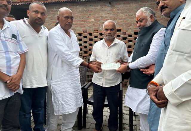 परिवहन मंत्री ने बलिया में रोहित पाण्डेय के परिजन को 5 लाख रुपए की आर्थिक सहायता राशि प्रदान की