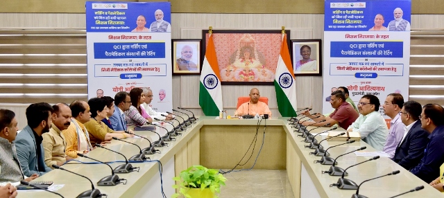 मुख्यमंत्री ने अपने सरकारी आवास पर मिशन निरामयाः के तहत क्वाॅलिटी काउंसिल आफ इण्डिया द्वारा नर्सिंग एवं पैरामेडिकल संस्थानों की रेटिंग एवं जनपद मऊ तथा शामली में निजी मेडिकल काॅलेजों की स्थापना हेतु अनुबन्ध के अवसर पर आयोजित कार्यक्रम में अपने विचार व्यक्त किये। मुख्यमंत्री के समक्ष जनपद मऊ तथा जनपद शामली में पी0पी0पी0 मोड पर स्थापित किये जाने वाले मेडिकल काॅलेजों के लिए पी0पी0पी0 पार्टनर के साथ कंशेसन एग्रीमेण्ट पर हस्ताक्षर किया गया। उन्होंने मिशन निरामयाः के तहत क्वाॅलिटी काउंसिल आफ इण्डिया द्वारा करायी गयी नर्सिंग एवं पैरामेडिकल संस्थानों की रेटिंग की पुस्तिका का विमोचन किया।