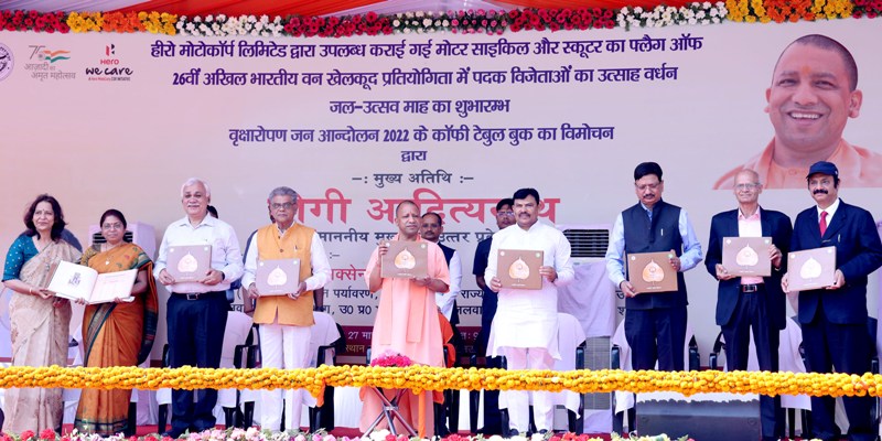 मुख्यमंत्री ने अपने सरकारी आवास पर वन विभाग द्वारा आयोजित कार्यक्रम में अपने विचार व्यक्त किये। इस अवसर पर उन्होंने 26वीं अखिल भारतीय वन खेलकूद प्रतियोगिता में पदक विजेता प्रदेश के खिलाड़ियों का उत्साहवर्धन किया। जल उत्सव माह की घोषणा तथा वृक्षारोपण जनआन्दोलन 2022 की कॉफी टेबल बुक का विमोचन भी किया। मुख्यमंत्री द्वारा वन विभाग को सी0आर0एस0 फण्ड के तहत हीरो मोटोकॉर्प लिमिटेड द्वारा उपलब्ध करायी गई मोटरसाइकिलों और स्कूटियों को हरी झण्डी दिखाकर रवाना किया गया। इस अवसर पर मुख्यमंत्री को हीरो मोटोकॉर्प लि0 के सी0एस0आर0 प्रमुख राजेश मुखीजा ने हीरो मोटोकॉर्प लि0 द्वारा वन विभाग को सौंपी गयी मोटरसाइकिलों व स्कूटी की प्रतीकात्मक चाभी भेंट की।