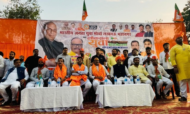भाजपा लखनऊ महानगर द्वारा भारतीय जनता युवा मोर्चा सम्मेलन कार्यकम लोकसभा प्रत्याशी राजनाथ सिंह के समर्थन में कार्यक्रम का आयोजन इको गार्डन रोड पर आयोजित किया गया। जिसमे मुख्य अतिथि उपमुख्यमंत्री बृजेश पाठक, केंद्रीय मंत्री रामदास आठवले, लखनऊ महानगर अध्यक्ष आनंद द्विवेदी, भाजपा वरिष्ठ नेता नीरज सिंह, युवा मोर्चाअध्यक्ष मानवेंद्र प्रताप सिंह उपस्थित रहे।